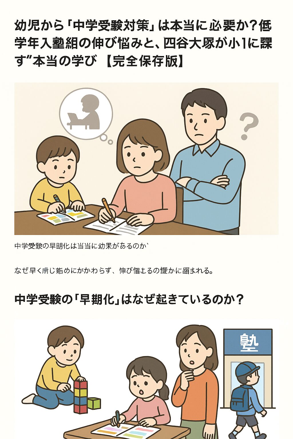 中学受験対策幼児から低学年入塾組は不振説も…《早期化する実態と効果のほど》老舗・四谷大塚は小1に何をさせている?について記載させていただきました。