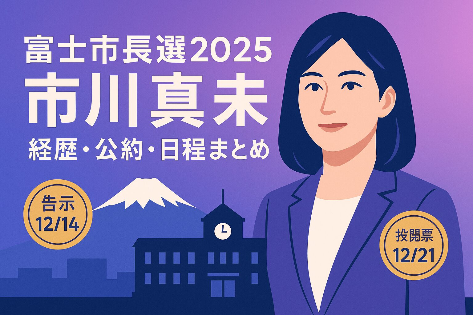 静岡県・富士市長選(12/14告示・12/21投開票予定)に出馬した市川真未氏について、要点だけ最短で確認できるまとめです。一次情報リンクも付けています。